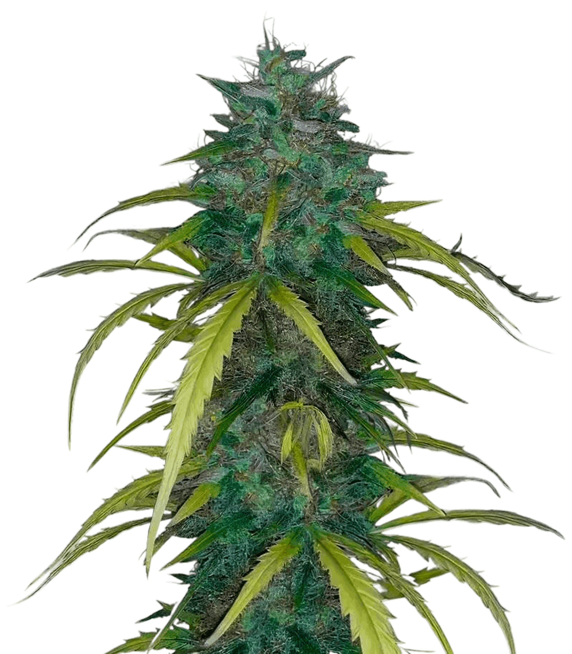 The 60/40 indica-sativa blend keeps the architecture tight and manageable throughout the entire cycle. Indoor plants stay comfortably below the one-meter mark, while outdoor plants stretch to around 110-130 cm without sprawling sideways. Once flowering begins, the visual transformation is striking: buds coat themselves in a clearly visible layer of resin, and the foliage cycles through a vivid yellow-green spectrum that gives the canopy an almost tropical intensity.